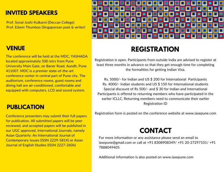 July 20, 2018July 20, 2018cdhpuneLeave a Comment on ICLLC 2018 (14-16 December) in Pune ICLLC 2018 (14-16 December) in Pune For additional information, please visit the conference website Share this: Click to share on X (Opens in new window) X Click to share on Facebook (Opens in new window) Facebook Like Loading...